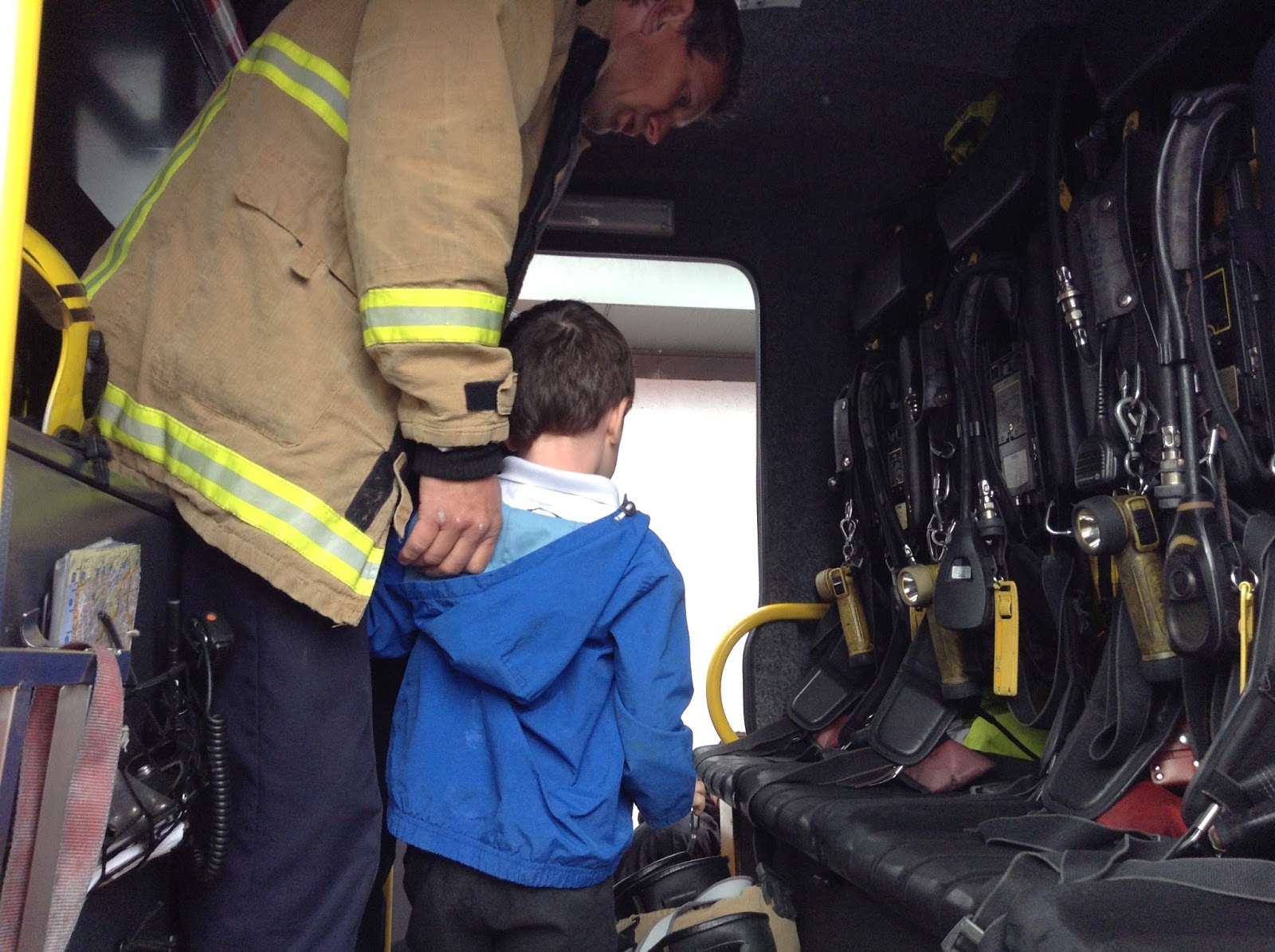 Today we were visited by white watch from the fire station today. They arrived and started speaking to Miss Holland but then suddenly the siren started going off and they were needed for an emergency! So they had to speed off with their sirens and blue lights flashing!